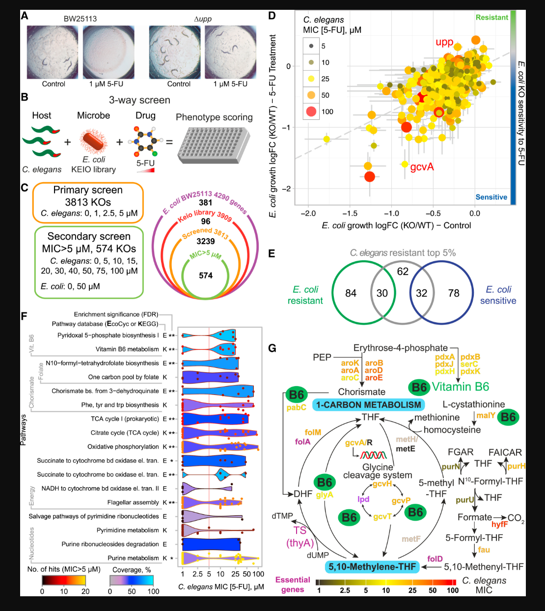Fluoropyrimidines are the first-line treatment for colorectal cancer, but their efficacy is highly variable between patients. We queried whether gut microbes, a known source of inter-individual variability, impacted drug efficacy. Integrating multi-omics data for our host/microbe system, our findings highlight the potential therapeutic power of manipulating intestinal microbiota to ensure host metabolic health and treat disease.