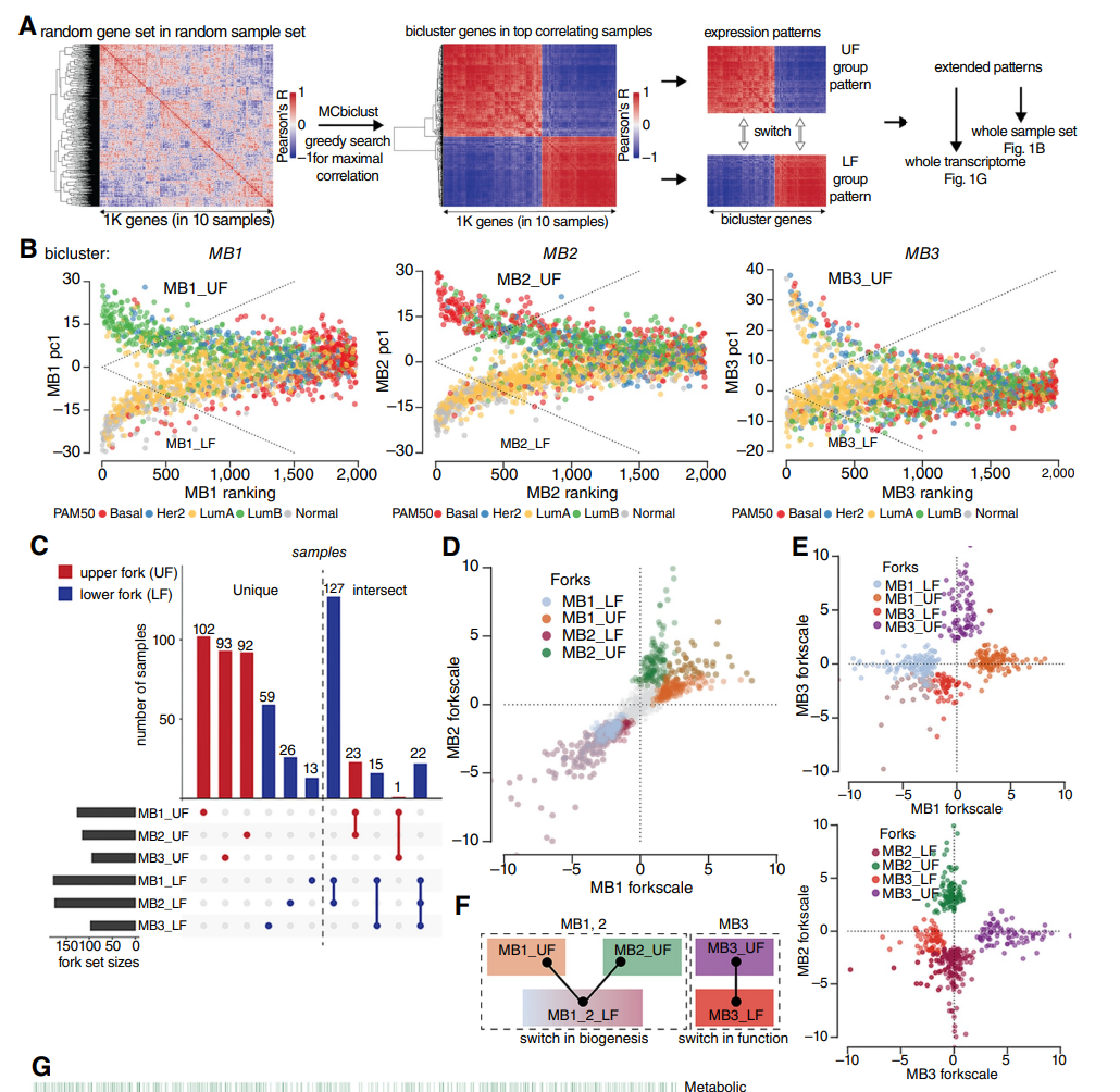 Application of our MCbiclust software to breast cancer samples and experimental validation using metabolomics.